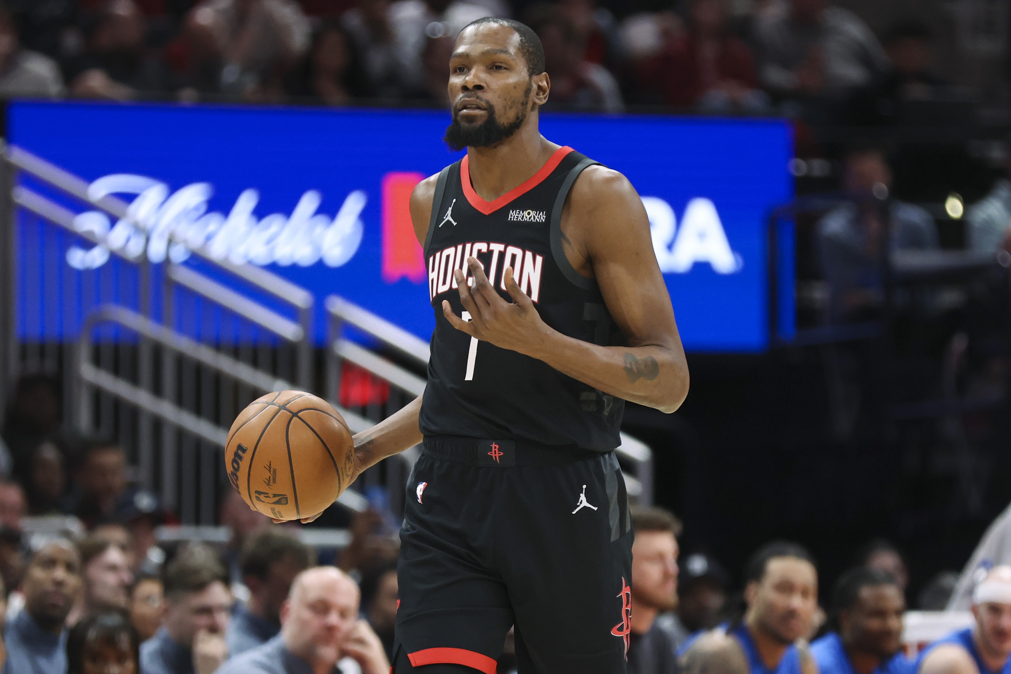 第三点是关于凯文·杜兰特。与他对阵一定很令人沮丧。好吧,在大多数夜晚,看着他在火箭阵中的表现确实令人感叹。防守端即便已经做到了极致,但这依然无济于事。本场比赛他24投11中砍下33分,三分球9投4中,并抢下8个篮板,送出2次助攻,以及1个盖帽。他确实会以奇怪且令人沮丧的方式失误,但自从在对阵76人时失误频发以来,他似乎变得更加小心了。如果你让杜兰特承担进攻发起的重任,而非仅作为得分手和终结者,那就必须接受他会出现一些失误。只要数量控制在较低的次数,那就没问题。
